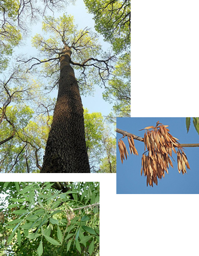 Árbol caducifolio de la familia Oleaceae que puede superar los 30 m de altura, con un tronco gris y rugoso.