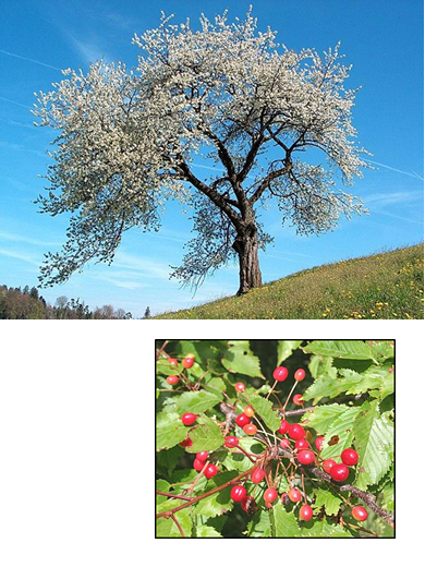 En primavera, el cerezo despliega su espectacular floración, con racimos de flores blancas, aromáticas y de gran importancia ecológica al atraer polinizadores como las abejas.