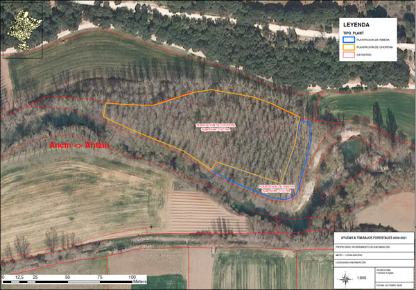 Por otro lado, en el pueblo de Antzin, con el apoyo del Ayuntamiento de la localidad, se cuenta con una plantación de clones de chopo que se venderá y se cortará recientemente. En cuanto a la nueva plantación que acogerá la zona, una parte se destinará al ámbito educativo. En este tramo se plantarán plantas de todas las especies seriales que participan en el desarrollo de la vegetación de ribera. Según consta en la obra de Loidi y Báscones de 1995, "Geoserie de ríos y arroyos navarro-alavesa y castellano-cantábrica [G3] Viburno-Ulmo Minoris S.; Humulo-Alno glutinosae S.; Salico lambertiano-angustifoliae S.", ecosistema de vegetación serial de esta zona, en el que se definen las diferentes etapas vegetales. Así las cosas, la plantación se realizará empleando todas estas plantas y con el objetivo de que los niños y niñas de toda la comarca dispongan de un espacio para el estudio e interpretación de la naturaleza.